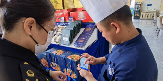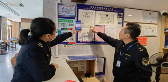 执法人员手持手机扫描营业执照二维码开展行政检查