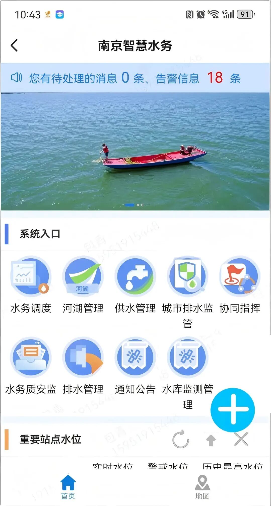 针对城市生命线内涝场景应急调度、监测异常管理、供水管理、首页发布、水库监测等应用模块,提供基于手机端的移动应用软件(如图5所示),与BS端实时数据联动,为现场工作开展提供强有力的技术支撑,为工作人员提供及时准确的信息获取和沟通渠道,保证排水系统调度等管理工作便捷有效开展。