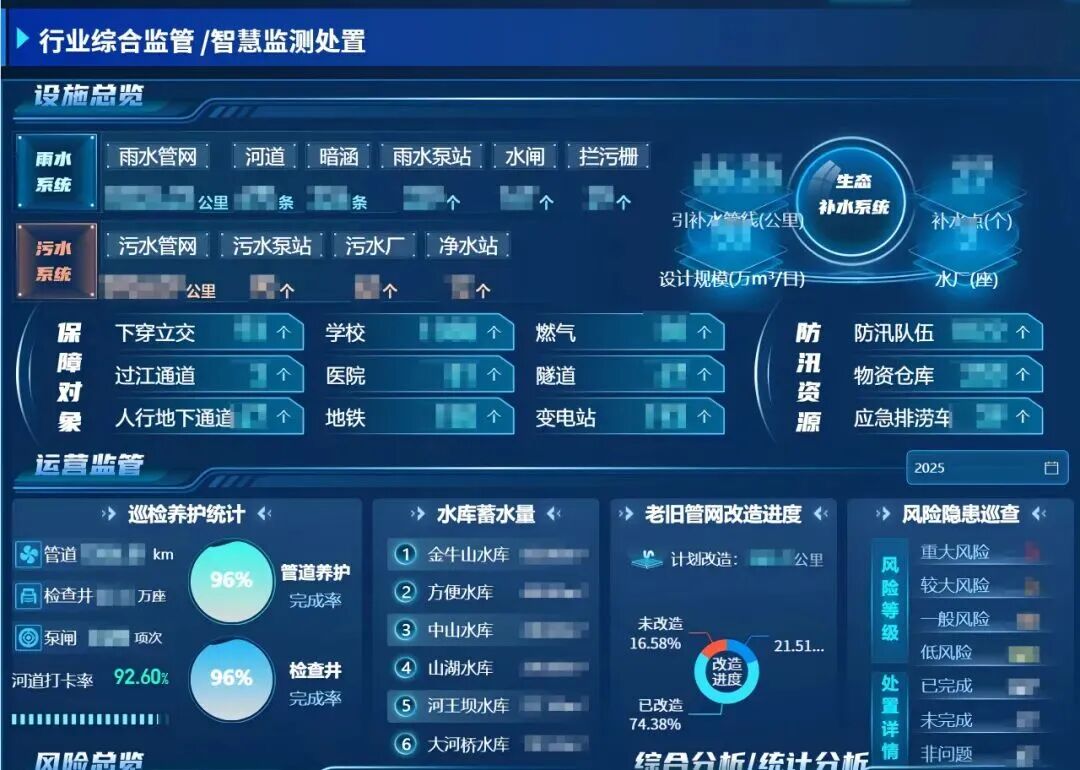 突破传统水务数据孤岛与流程割裂的局限,实现市级层面“感知-预警-决策-控制”完整闭环。通过“一网感知”监测网络与“一屏智管”指挥系统的无缝对接,基于实时数据与内涝模型预测结果,系统可自动生成并执行泵站、水闸等关键设施的调度方案,推动应急响应从依赖人工经验升级为数据与模型驱动的智能控制,大幅提升处置时效与科学性。