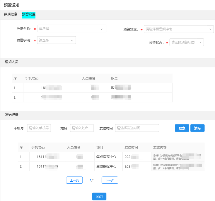 图2 数据预警配置