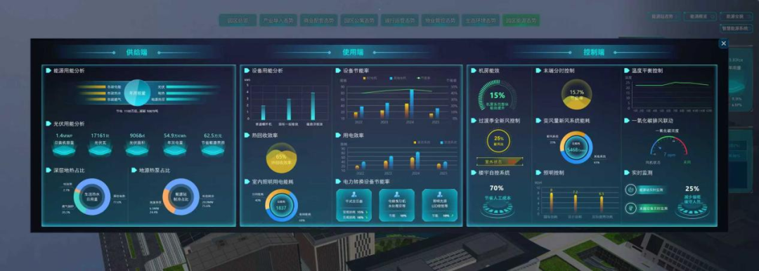 系统已应用于商服园区内酒店、办公、会展等多种业态建筑,聚焦能源系统开展深度优化。通过采集室内外环境参数、设备运行状态、能源计量数据等,构建建筑能源数字孪生体,实现如下典型场景: