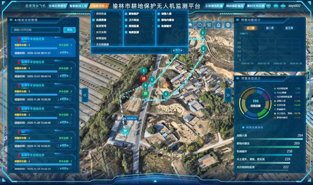 榆林市作为陕西农业大市,耕地资源丰富但分布分散,传统人工巡查监管存在覆盖有限、响应滞后、精准不足等短板,难以满足新时期耕地保护“早发现、早制止、早查处”核心要求。当前,国家高度重视耕地保护,相关政策明确依托测绘地理信息技术推进自然资源精细化管理,叠加智慧城市建设,技术创新成为破解监管难题的关键。在此背景下,我公司紧扣国家耕地保护红线政策及《全国基础测绘中长期规划纲要(2025-2035年)》要求,依托低空经济与测绘地理信息技术积淀,部署低空无人机空网监测平台,构建智慧化解决方案,助力榆林筑牢耕地保护红线、提升管理现代化水平。该方案已在榆林多地试点显现实效,有效降低耕地违法违规发生率,其可复制的技术路径与管理模式,也为全国同类耕地分散地区的保护监管工作提供了有益借鉴,具备广阔推广前景。