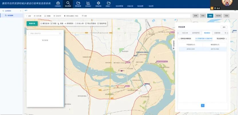 项目整合项目生成策划、用地规划、工程许可、矿业权登记等全链条行政审批业务,实现审查事项一体化梳理;聚焦“三区三线”、自然保护区、规划管控、权属、矿产压覆、地质灾害等核心审查要点,构建标准化审查体系。基于审查要点明确项目负面清单,在审批地图模块增设智能审查功能,一键触发空间审查并直观展示结果,简化审批操作流程;将负面清单审查结果同步反馈至业务审批表单,嵌入审批环节,实现智能审查与业务审批深度融合。