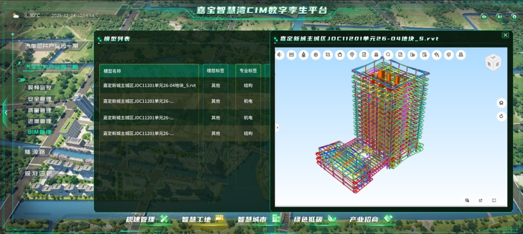 运营阶段:对“即将完工项目”和“未来实景”进行模拟,为后续的楼宇管理、能源优化、产业服务提供基础。