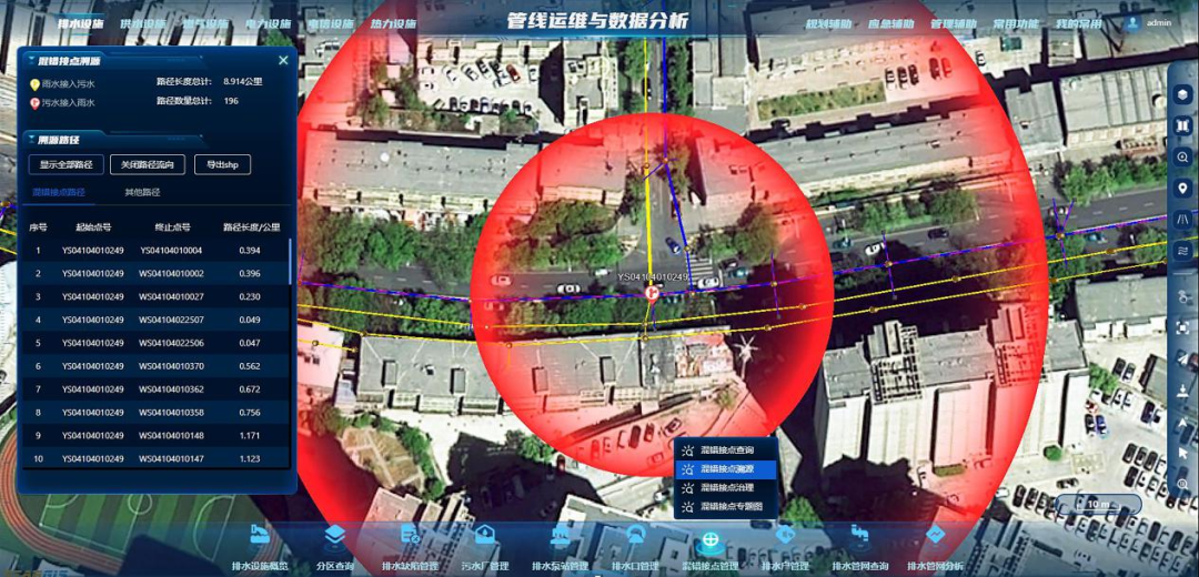 创新基于管网拓扑分析与流向特征的污染溯源方法,构建三维管网拓扑结构,利用递归算法结合排水流向,实现排水口、污水厂等多类型全路径溯源。借助排水许可信息锁定污染企业,大幅减少人力时间成本,为雨污改造治理提供核心数据支持。