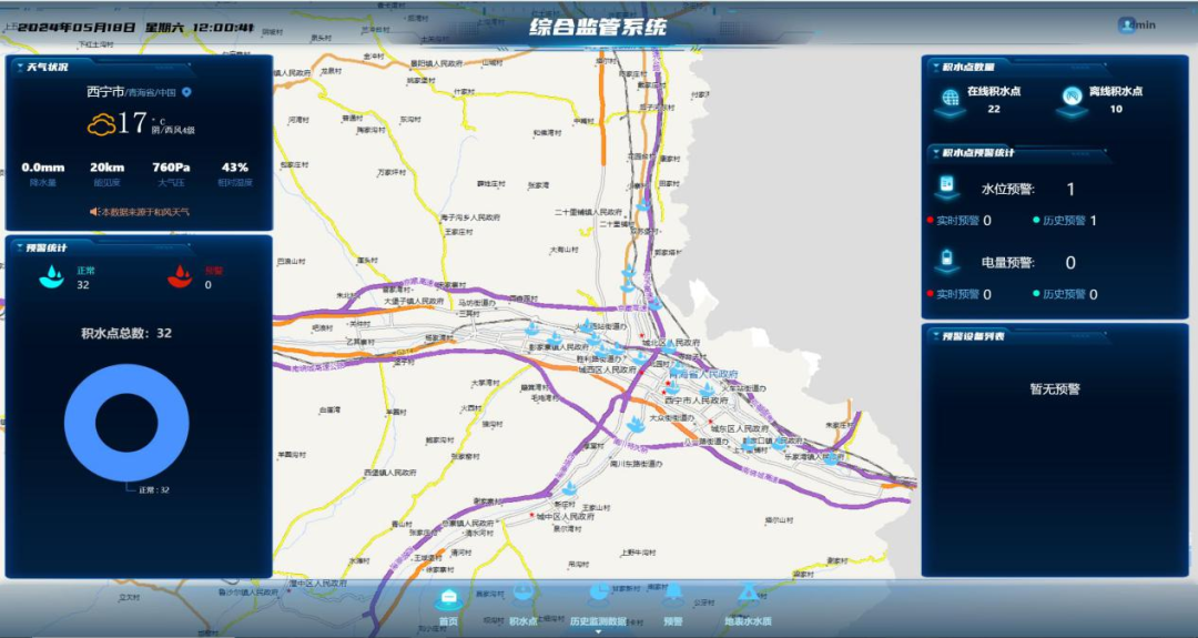 汛期来临前,综合监管子系统整合气象数据与积水点信息,提前发布积水预警;降雨过程中,实时监测管网运行状态,为应急调度提供数据支持,最大限度降低城市内涝对居民出行和财产安全的影响(如图8所示)。