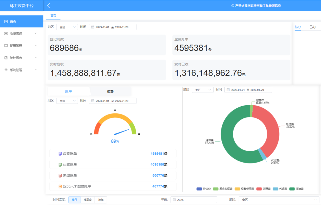 在全省率先建设环卫收费系统,构建透明、规范、便捷收费机制。2023年4月份上线以来,环卫收费总额突破13.16亿元,较系统使用前的传统人工上门收费方式翻一番以上,连续两年增量及总量均居全市第一,为城市环境持续提升奠定基础。摸清全区333万套出租屋瓶装燃气用户底数,超过半年未安检地址系统自动推送燃气企业整改,实现动态清零。燃气安全从“靠天吃饭”走向“心中有数”,连续两年零中毒、零爆炸、零亡人。建筑废弃物运输管理,以往只能靠不定时设卡检查管控,监管难、取证难、处罚难。选取153个重点卡口安装450余支智能摄像头,自动抓拍违法违规行为,实现24小时实时有力监控。